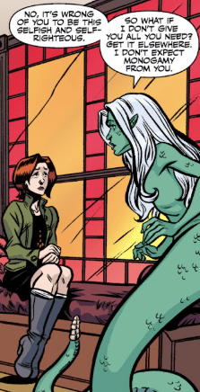 Aluwyn is angry now, her tail rattling more. “No, it’s wrong for you to be this selfish and self-righteous. So what if I don’t give you all you need? Get it elsewhere. I didn’t expect monogamy from you.”