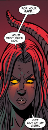 And the demon rises to her full height, towering over Willow. Her eyes glow a sinister yellow, and a red shade seems to cover her for a moment, a darkness Willow hasn’t seen before. “For your sake, you’d best hope not. Get out of my sight.”
