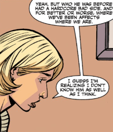 “Yeah,” Buffy agrees, but she looks away for a moment, remembering. “But who he was before had a hardcore bad side. And for better or worse, where we’ve been affects where we are. I guess I’m realising I don’t know him as well as I think.”