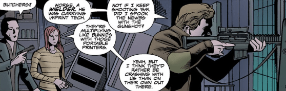Trevor breaks away, finds Ivy 2, and disables her quietly. A Wielder attacks with a makeshift device, but is shot before it activates. Trevor, having swapped out his hearing for tactical skills, can’t hear Alpha. When he restores it, he insists Ivy 2 can be saved.