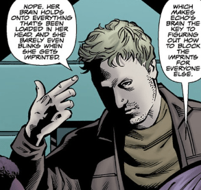 On the road to D.C., Alpha explains Echo’s importance. Trevor learns she’s like him – her brain holds everything. She’s the key to blocking imprinting. Alpha avoids explaining why he can’t do it himself. Ivy 3 hints at guilt buried deep in his head.