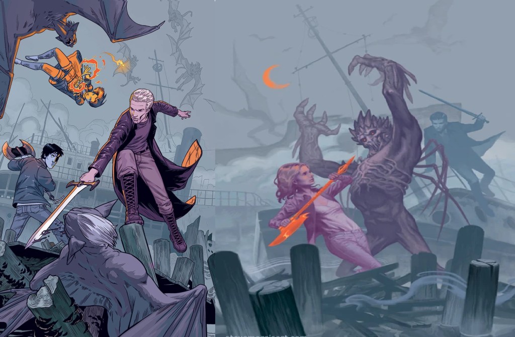 Angel tells Spike that the others need cover. Spike says no — they’re going to rip the bugger to shreds.