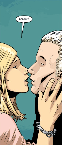 She places her hands on either side of his face. “Angel is a part of my past,” she tells him. “Who I am now, you’re part of that. Him showing up isn’t going to change anything, okay?” She kisses him, a smile on her lips. It’s a soft kiss that would have made the vampire blush if his blood was circulating. He promises he’ll shut up about it. Dawn is impressed by how Buffy handled that — she’s covering her nerves well.