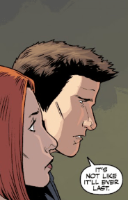 “I feel bad it took so long,” Buffy tells him. “I missed you.” She smiles at him, a warm, emotional smile. “I know things with us are never gonna be simple. But am I overreaching if I think we’re both strong enough to be part of each other’s lives again?”