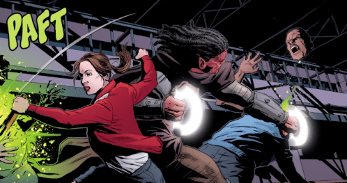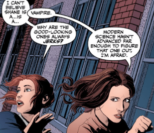 Running through the building, Mary questions everything. “Why are the good men always jerks?” she asks. Fred, pausing at a closed exit, sighs. “Modern science hasn’t advanced far enough to figure that one out, I’m afraid.” Before they can open the door, Shane’s voice calls out.