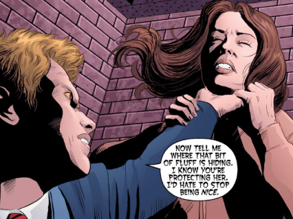 Elsewhere, in a history classroom, Fred and Mary huddle as Shane bursts through the door. Fred fires an arrow — he catches it and snaps it with a chuckle. He grabs Fred by the throat, slamming her into the wall. “I want Mary. I’d hate to ask twice.”
