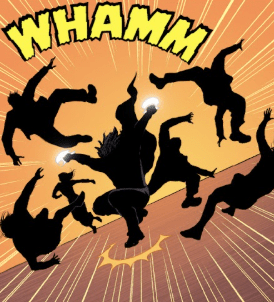Mary grabs the broken arrow, tries to strike — but Shane knocks her down. “I don’t know what the mistress needs you for, but you’re nothing special.” He doesn’t see Fred until the flagpole hits his back. Fred grumbles about new vampires having hide like armour. Mary adds her strength.
