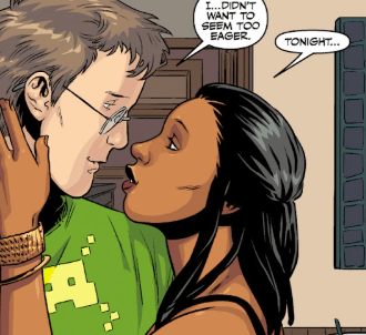 She kisses him. “Tonight, there’s no such thing.” The ‘Do Not Disturb’ sign hangs on the door for quite some time.