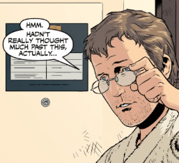 “I neglected all other aspects of my life. Relationships, family, my music — all of it — to be a Watcher. And to what end? I’m a useless old sod without enough in my life to fill a bloody day of…” He stops himself and throws the device in his hand away. He yells at the screen. “How the hell did I do this as a child?”