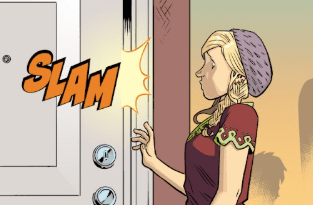 Her tone is slightly too harsh. Giles doesn’t respond for a moment, then gets up and heads for the door. “Yes, well, point well made.” He goes through the door. Buffy instantly regrets her words. The response is a loud slam.
