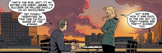 Twenty minutes later, Hank Summers smiles broadly at Buffy and Dawn as they sit down in a booth at a restaurant. He can’t believe how grown-up and mature they both are.