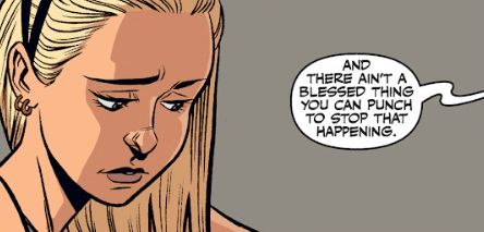 “See? This is what happens when people don’t come out and say what they’re thinking. It’s always worse. With Dawn spending so much time at school and Willow with her girlfriend, Buffy should be able to lean on Spike, but instead…”