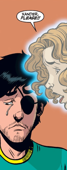 Xander isn’t denying she exists. Just what — or who — she is. Anya reminds him of the psychic they were fighting at the time: hardly reliable source material. But Xander still avoids her gaze.