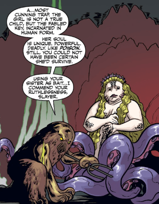 “You have family. A Slayer murdered my family. But at last — AT LAST — I will have my revenge. Watch, Slayer. Watch and weep as I devour the soul of your sister!”