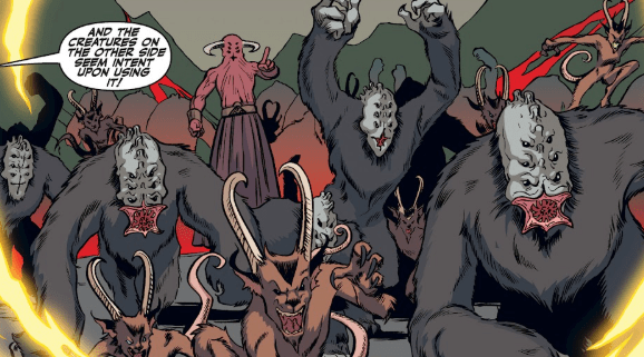 The realisation hits them all. If they go through the portal, they’ll be trapped in the Hell dimension — with no way home.