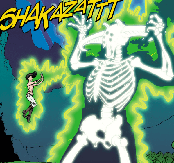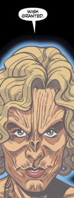 He yells in perceived triumph and fires energy at D’Hoffryn from his trident.