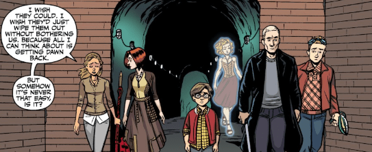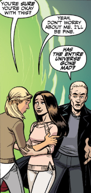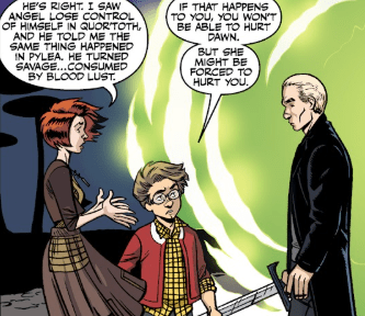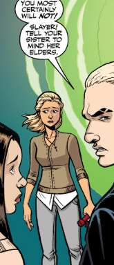 But a hand on her arm silences the Slayer. It’s Dawn.