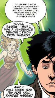 “You’ll regret this!” Anya yells. “I was a Vengeance Demon! I know from payback! And I will make you pay for this, Xander Harris!”