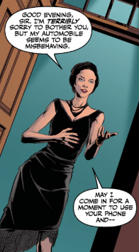 A tall woman stands before him. She’s not wearing shoes, which the professor finds odd. She’s wearing a long black gown, with tied‑back hair in an intricate bun. She has dark eyes, and a Cockney accent that is barely audible, like a whisper.