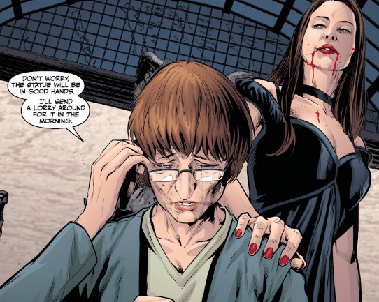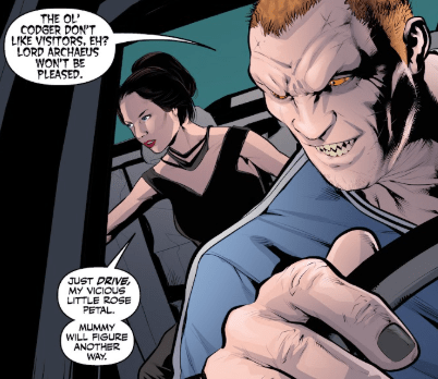 Outside, Drusilla is not amused. Her face leers into frustration as she gets back into the car situated nearby. Her newest foot soldier, whose name she can’t remember, tells her that Lord Archaeus will not be pleased: the statue is the missing part of his plan. Dru simply tells him to drive — she will find another way.