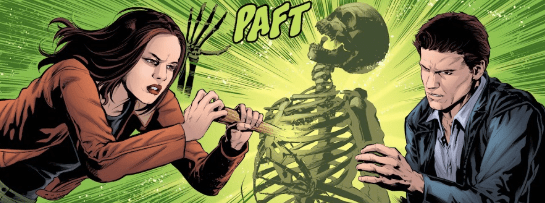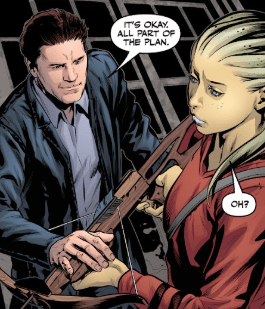 Fred has also received some intel from Brandt that they also need to check out. But Angel and Faith re-enter the room at that moment. Angel looks at them all in the eyes and smiles.