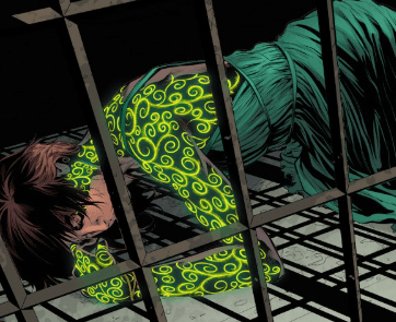 Archaeus tells her that when the statue business is completed, Angel will come. He will come for her. He looks at Nadira, unconscious in a cell, her green skin marks pulsating with power, despite her sleeping form.