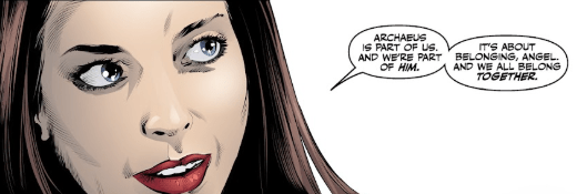 Her next words surprise him. “I miss us, Angel.” There is no us, he reminds her, only for her to turn and tells him that there is. “It’s the right thing. Archaeus is part of us. And we’re part of him. It’s about belonging, Angel. And we all belong together.”