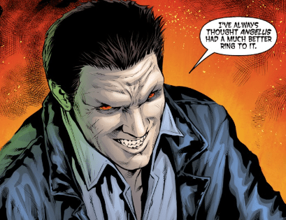 “I’ve always thought Angelus had a better ring to it,” he says, the demon out, his fangs bared.
