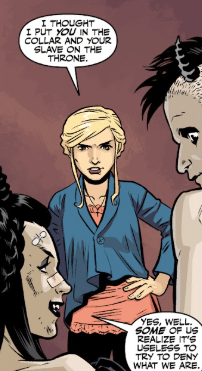 “I’m sorry,” Spike says, finally turning to her — but managing not to look at her. His face is pained. “But I think part of the reason we let D’Hoffryn trick us is because we’ve been distracted by our own problems. And let’s be honest, Slayer, we are having problems.”
