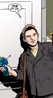 “Five of us.” They’re surprised by Andrew, who walks through the door. Buffy got the impression from his social media that he may be slightly mad at them, but he brushes it all to one side.