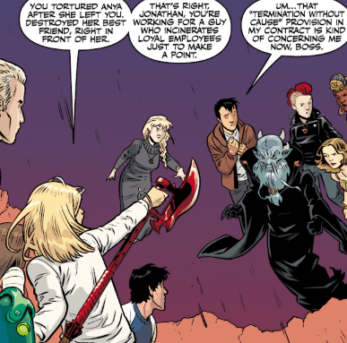 Jonathan looks nervous. He turns to D’Hoffryn. The “Termination without cause” provision in his contract has made him nervous.