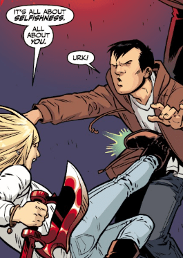 She kicks Jonathan aside with a smack. “It’s all about selfishness. All about you.”
