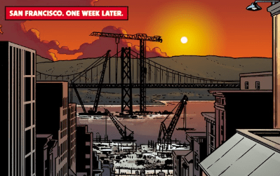 Buffy and Spike exchange glum looks. “So someone woke up a storm dragon and sent it to wreck San Francisco. We’re at war. And we still don’t know with whom.”