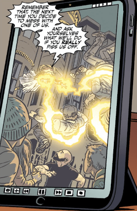 Two hours later, Willow watches the confrontation back on a screen. “Remember that, the next time you decide to mess with one of us. And ask yourself what we’ll do if you really piss us off.” Her lightning lifts a few members of the mob before dropping them unharmed. As the footage ends, Willow sighs. “Okay. So it’s not a great look.”