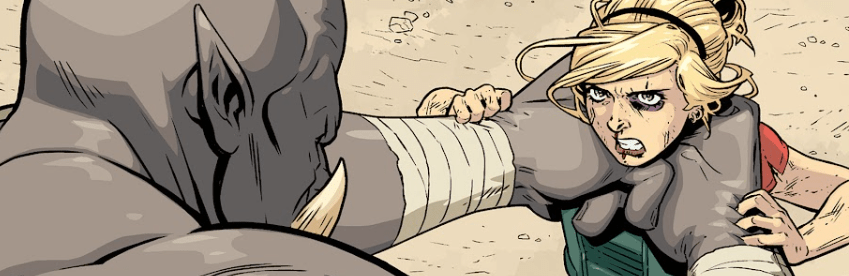 The Ogre blindsides her, punching her hard across the face. “Why won’t you die?” he roars, frustrated.