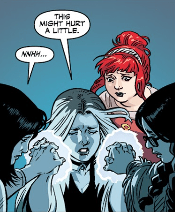 Buffy sighs. “So they’re trying to take away magic powers. Make me a regular non‑Slayer‑ish person again.”