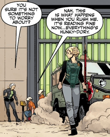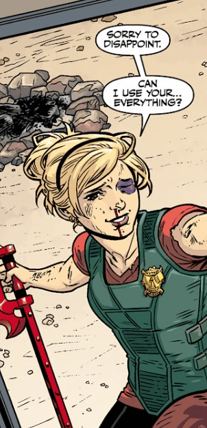 Buffy turns away, leaning on her Scythe. Her leg is worse than she let on; the feeling hasn’t fully returned. “Okay. Word of advice — stay out of my way. Come to think of it, stay out of everyone’s way.”