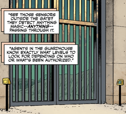 Buffy points out that supplies get in all the time, but Willow gestures to the small devices attached to the metal gate’s frame.