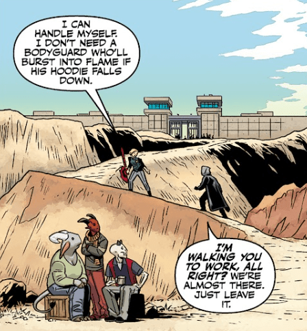 “In case you haven’t noticed, your pal only poisoned me enough to make me dangerous,” she says, rolling him to face her. “So think carefully when you answer this: what’s your beef with me?”