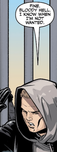 Spike looks wounded for a moment, then storms off. “Fine. Bloody Hell. I know when I’m not wanted.”