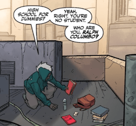 “High school for Dummies? Yeah, right, you’re no student. Who are you, Ralph Columbo?”