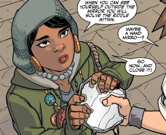 Giles heeds her warning and takes the mirror from her. Then Vega speaks in riddles.