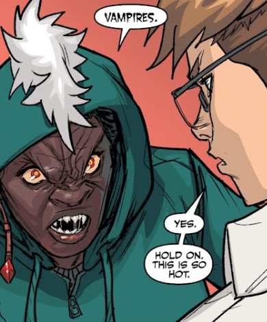“Right. You’re a multi-hyphenate. A vampire and an activist.” His tone suggests he doesn’t quite believe a single word she says.