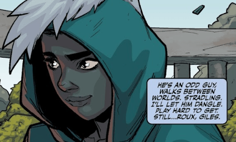 Giles helps Roux to her feet. “We’ve really got to stop meeting like this.”