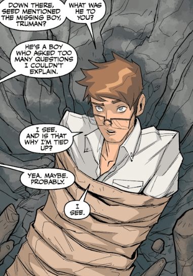 “Down there, Seed mentioned the missing boy. Truman,” Giles says carefully. “What was he to you?”