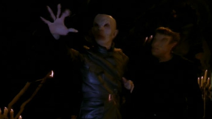 25:00 : Angel refers to them standing at “the Mouth of Hell,” the first hint at a Hellmouth beneath Sunnydale. A mystical gateway to a Hell dimension, the portal would normally remain sealed, but dark forces gravitate towards its energies, causing supernatural activity in the surrounding area. There’s another one in Cleveland.