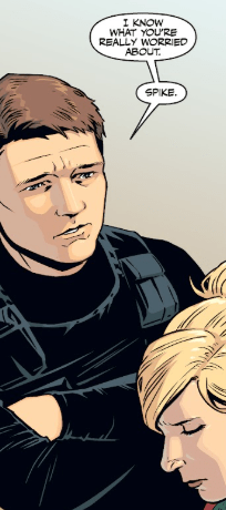 Riley looks at her with sincerity. “I know what you’re really worried about,” he says, stepping closer. “Spike.”
