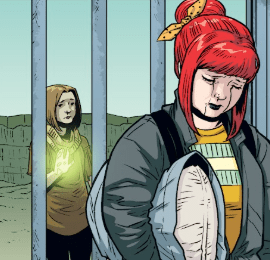 At the main gate of the compound, Calliope now stands on the other side looking in, a steel fence between her and the still‑contained Willow. Calliope says she feels strange… sad… like she’s lost something, but can’t remember what. Willow apologises and holds her hand through the gate, palm to palm. She lets her magic flow over her skin. The sensation tickles.