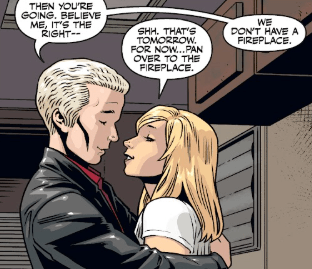 Buffy looks back at him with a smile. “Listen to me, William Pratt. If we break up, it’ll be over something a lot worse than not seeing each other for a couple of weeks. Like your soap operas.”