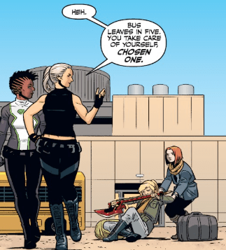 Jordan and the other Slayers chuckle. “Bus leaves in five. Take care of yourself, Chosen One.” She emphasises the last words with a taunting tone.